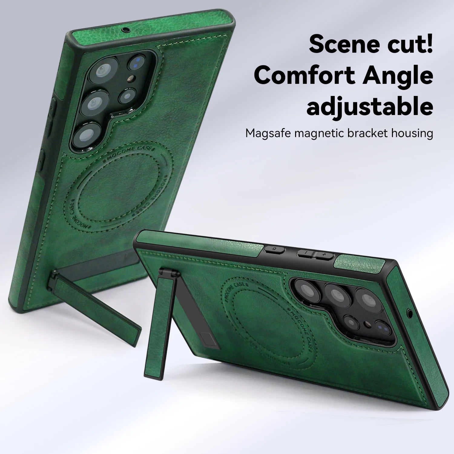 Luxury Leather Stand Phone Case for Samsung Galaxy (Magnetic Wireless Charging)